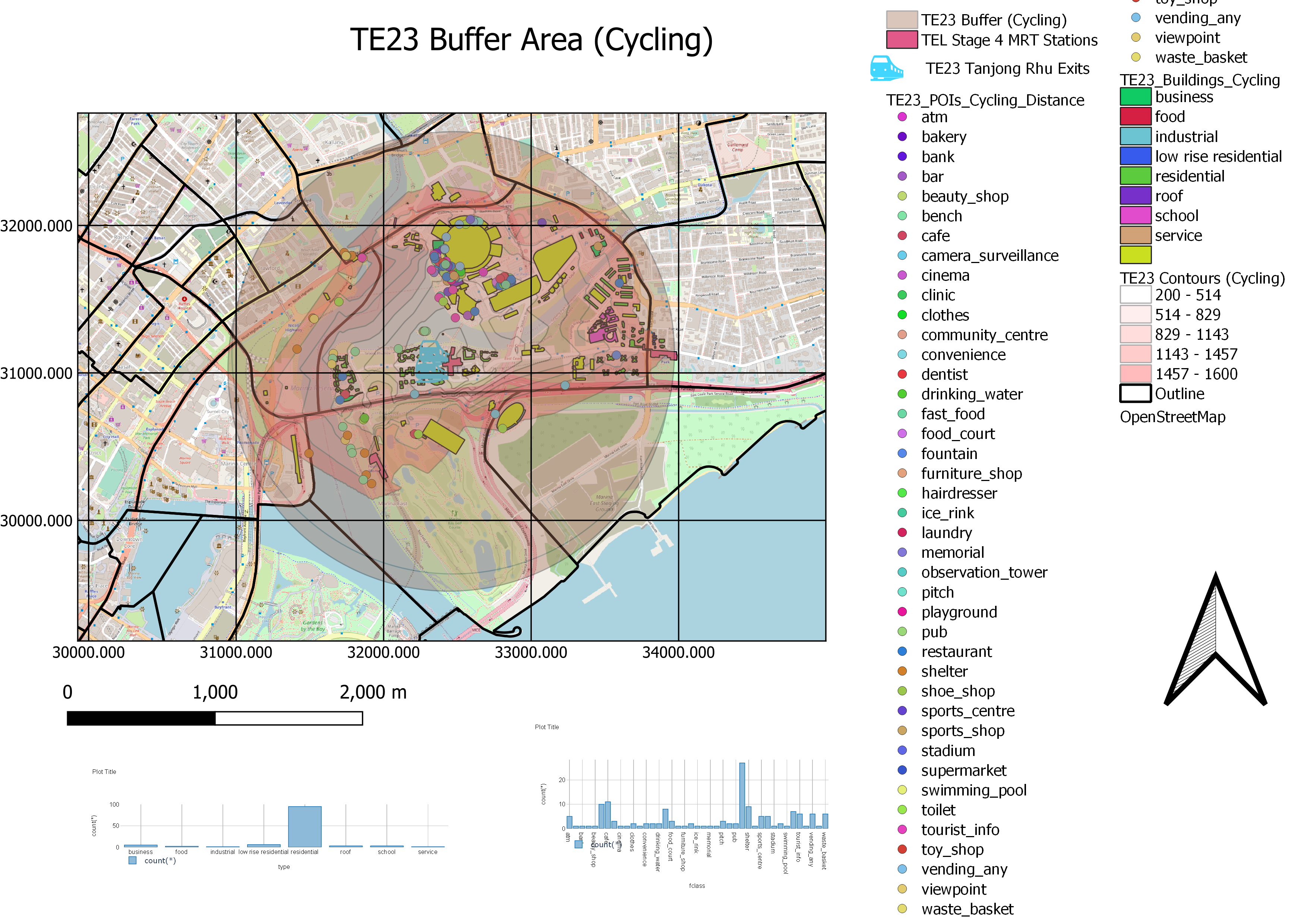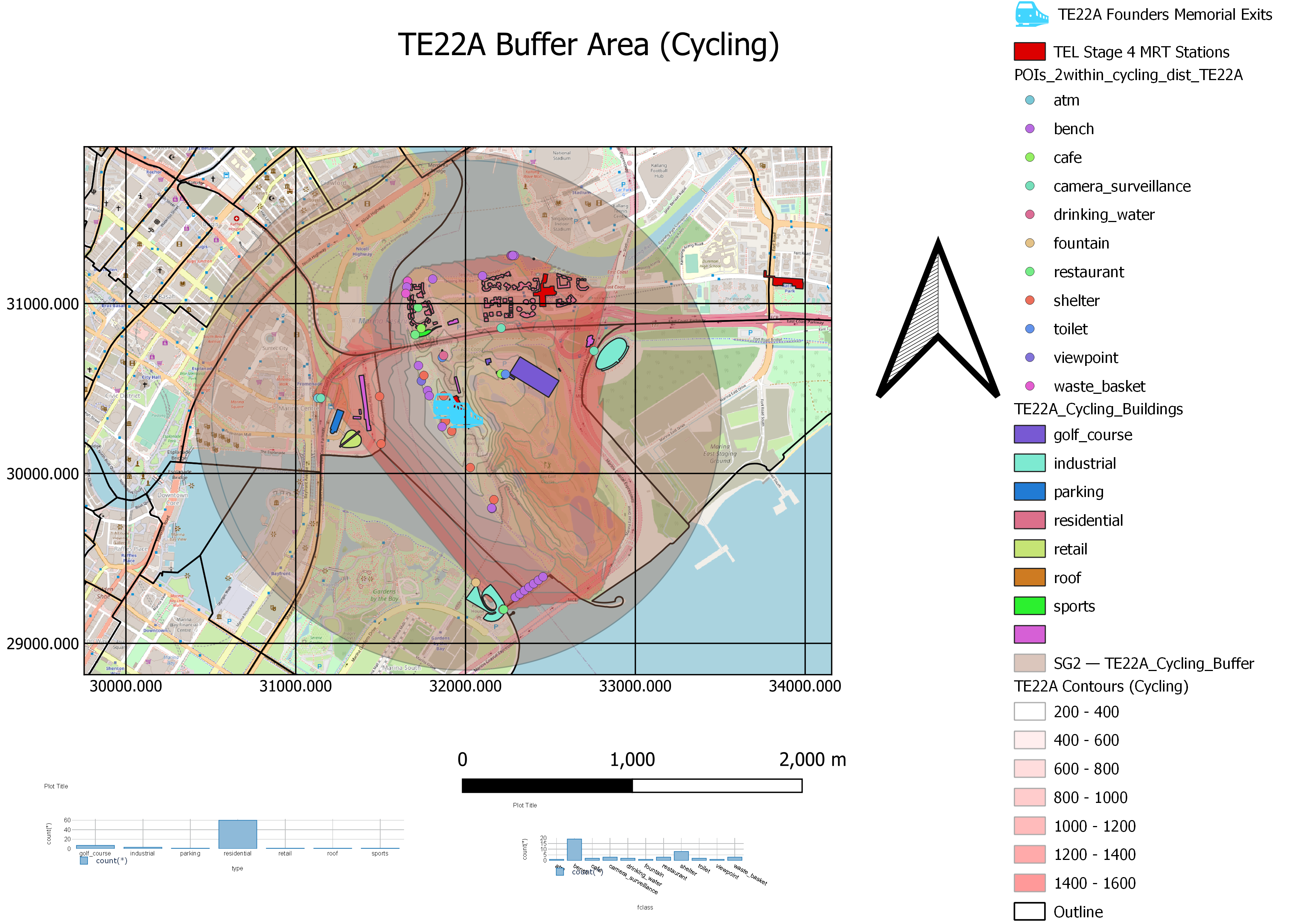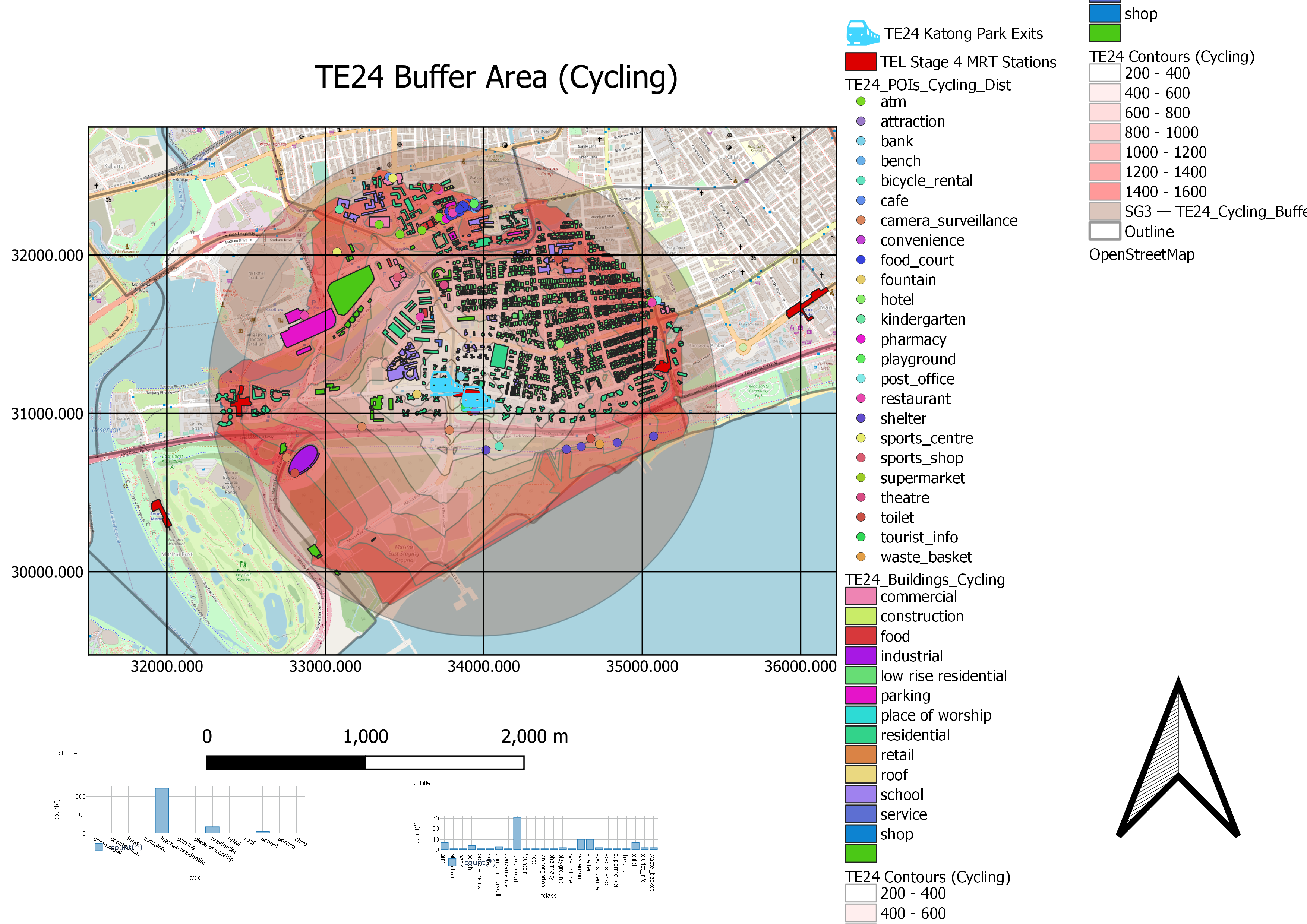 We also assume that buffers are the optimum catchment areas for all TEL Stage 4 MRT Stations. With reference to Walking and Cycling Buffers, we also hope to analyse the distribution of the contour intervals to provide improvements to existing road network systems to increase the reach of Catchment Areas.
