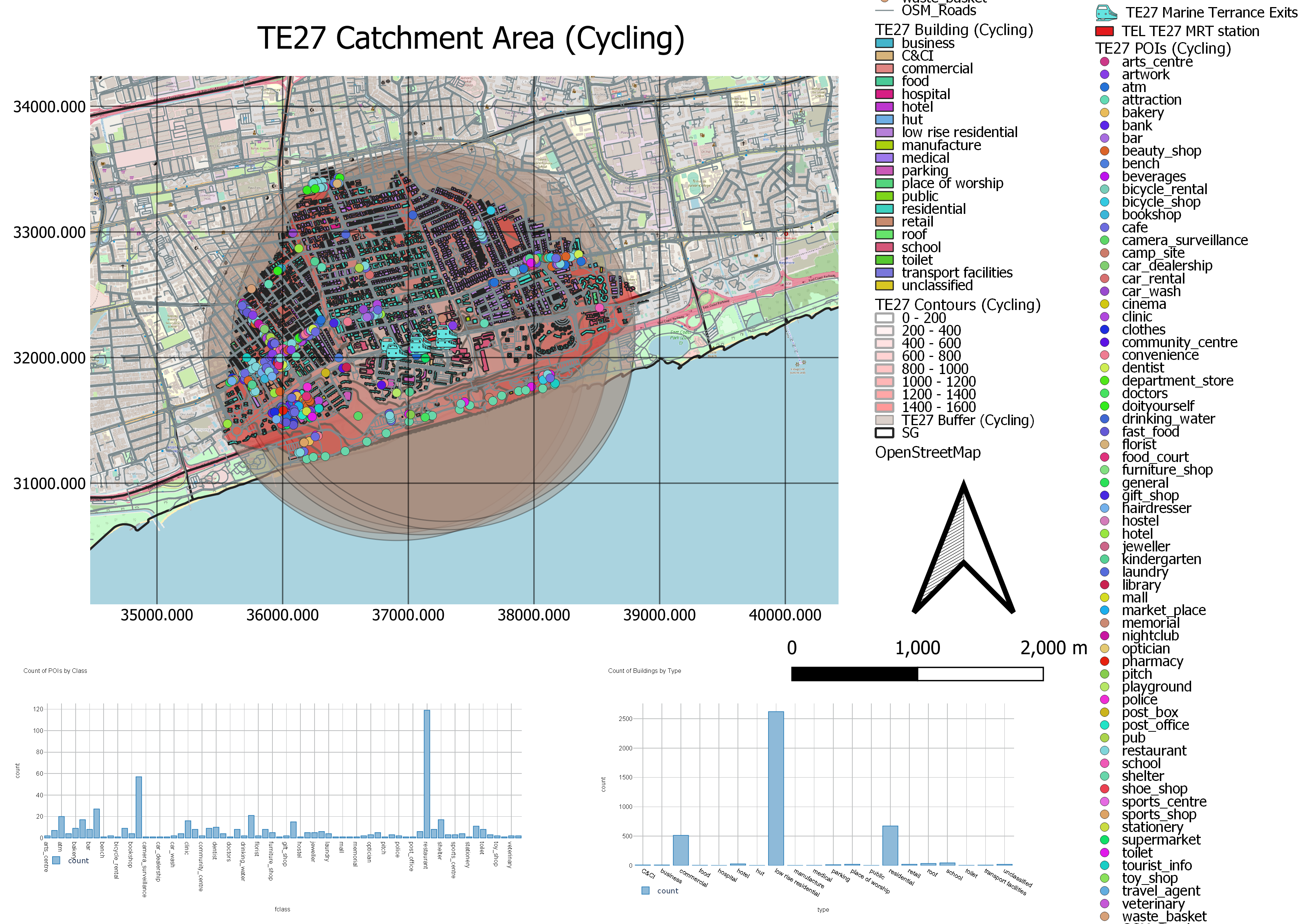 2.7.2. Catchment Amenities Distribution and Buffer (Cycling)